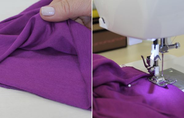 Em seguida, junte as bordas do tecido e alinhave.