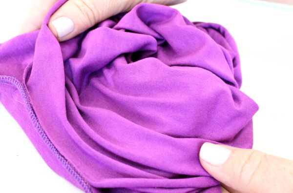 Agora, pegue a parte aberta e vire o turbante todo pelo lado avesso.