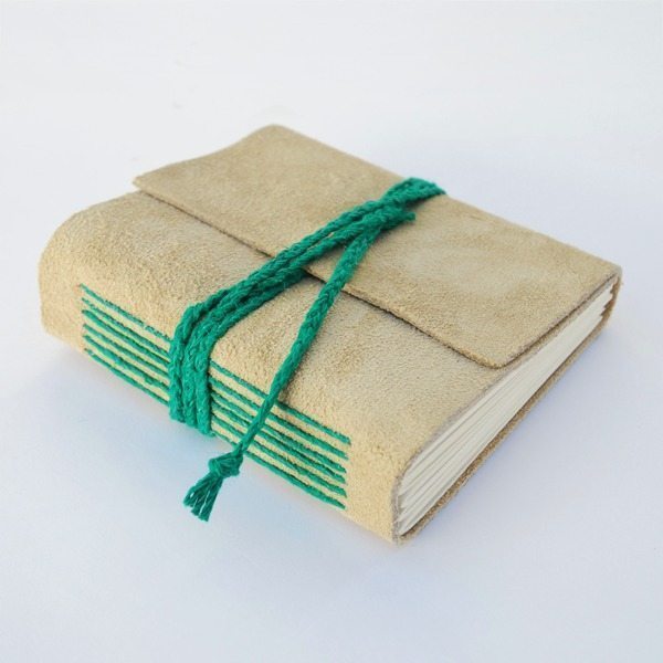 Logo após, para finalizar a sua peça, basta terminar de costurar os outros grupos de folhas de papel que você quer para a sua agenda. Trance alguns fios, faça um furo na aba, passe o cordão por dentro e depois faça uma argola pra amarrar o cordão ou apenas enrole o cordão ao redor da agenda. E está pronto!