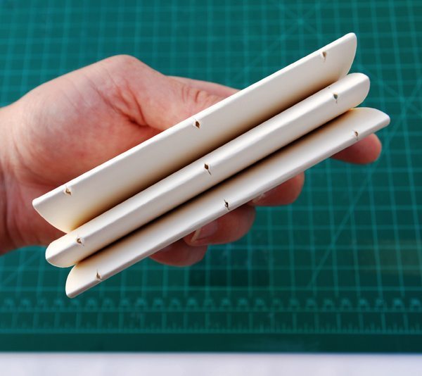 Em seguida, dobre todas as folhas cortadas ao meio e marque onde você irá fazer os furos em sua peça. E depois fure sobre as marcações.