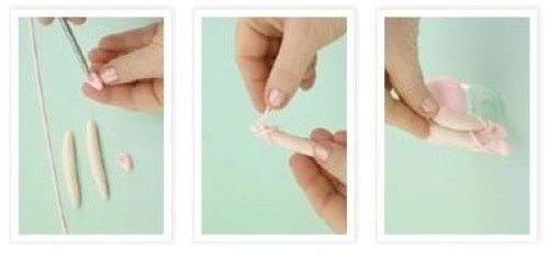 - Use 2 bolinhas para fazer a sapatilha cor de rosa.