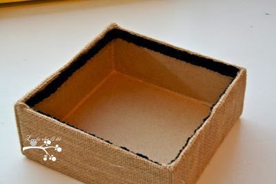Logo após, cole a fita escolhida por cima da sobra e tecido que está por dentro da base da caixinha.