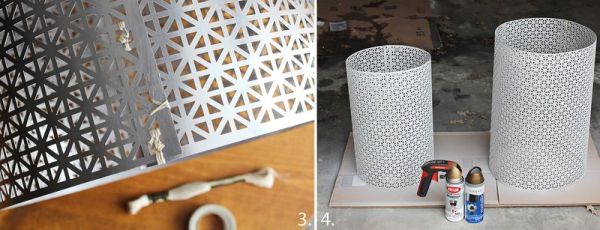 Comece cortando a chapa de alumínio com o tamanho que você quiser para a sua mesinha. Depois prenda uma ponta à outra com o auxílio de pedaços de linha grossa amarrados por toda a extremidade da peça, juntando as duas partes, e criando um cilindro com a espessura de sua preferência.