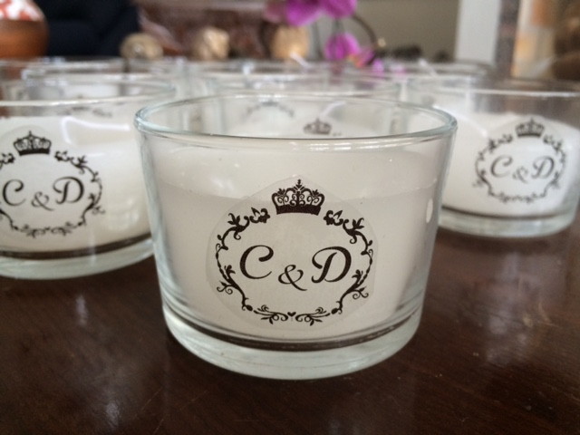 vela em copinho com etiqueta