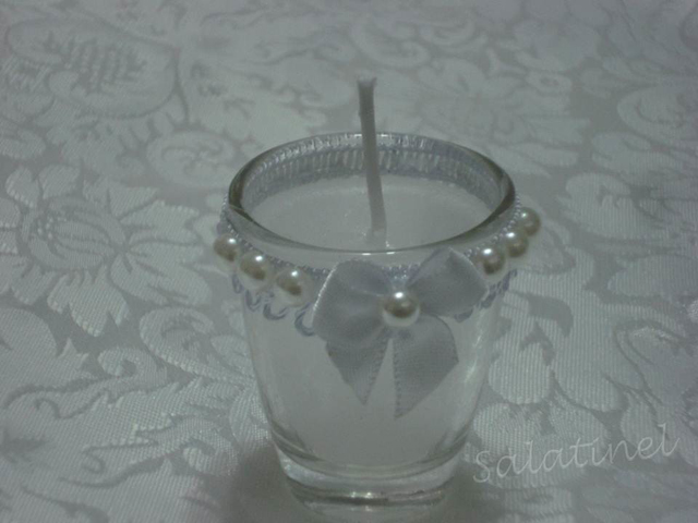 vela em copinho com perolas