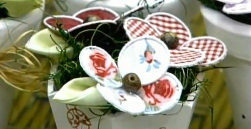 - Quem não tiver molde para fazer flor, pode utilizar a tampa de um produto, como por exemplo de uma acetona.