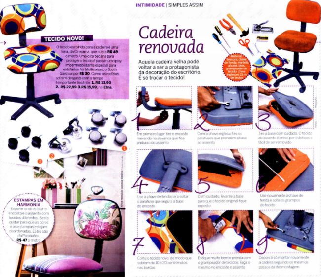 Você pode começar a forrar cadeiras, para experimentar como é bom fazer trabalhos artesanais.