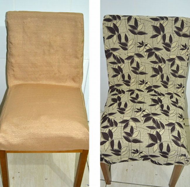 Você pode forrar cadeiras estofadas de forma bem simples colando um tecido ao redor do assento e do encosto ou fazendo uma capa costurada para o encosto.