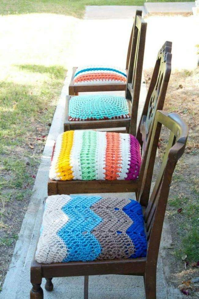 A sua cadeira de cozinha pode ser forrada até mesmo com tricô ou crochê.