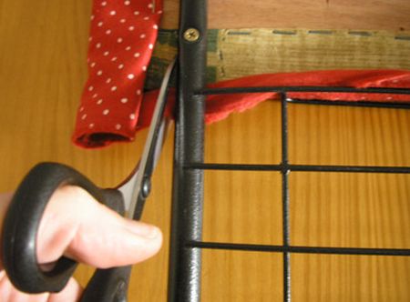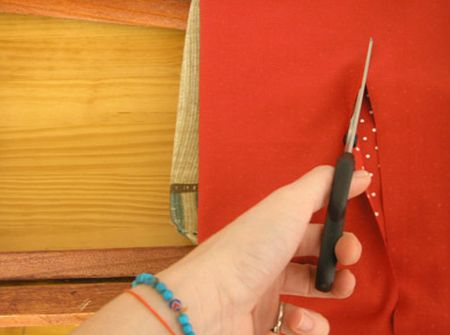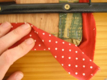 Em seguida, para finalizar a sua peça, reforce os grampos nas diagonais da “ponta” da tábua de passar roupas, onde ficará muito tecido sobreposto. E está pronto!