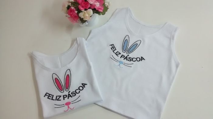 Customize roupinhas infantis com o tema Páscoa, escrevendo, desenhando ou até mesmo acrescentando detalhes, como o rabinho do coelho.