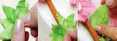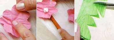 Agora abra as flores e segure no miolo para franzir cada flor. Utilizando a cola quente você irá colá-las na parte da frente da caixa.