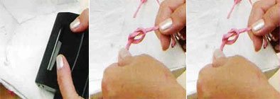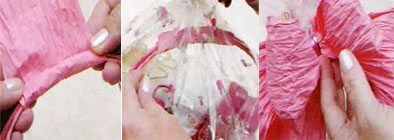 Corte um pedaço do fio fino Kraft rosa e abra. Depois envolva-o no centro das duas alças.
