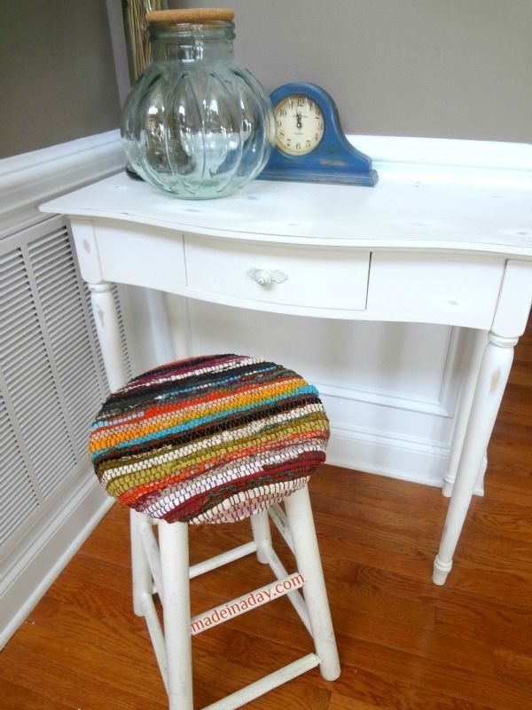 Créditos:http://madeinaday.com/2013/03/04/recycled-fabric-stool-pier-1-knockoff/