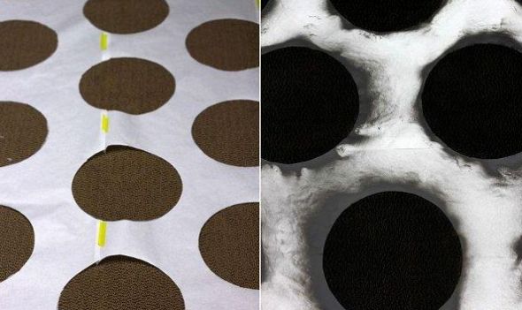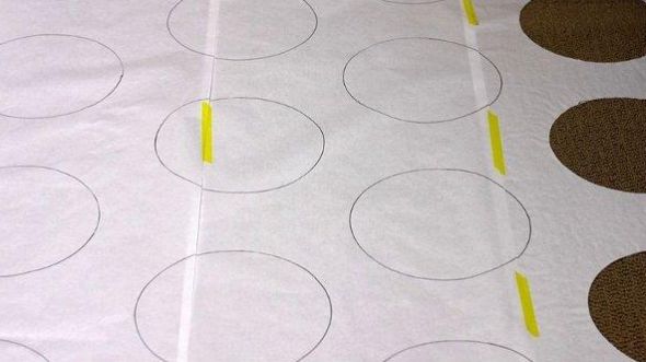 Assim que tiver recortado todos os círculos, coloque o papel novamente sobre o tapete e prenda o papel. Pinte os círculos com a tinta spray, pressionando o papel com a mão para que fique bem rente ao tapete e seu círculo fique perfeito.