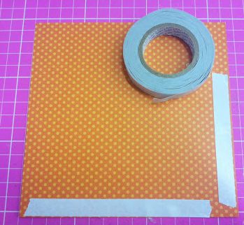 Em seguida, aplique fita dupla face no papel laranja em dois lados.