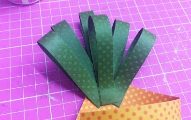 Em seguida, cole todas as tiras vedes dobradas na borda do cone.