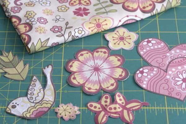 - Tecido estampado de sua preferência, mas com cores que se harmonizem com as cores dos papéis escolhidos;