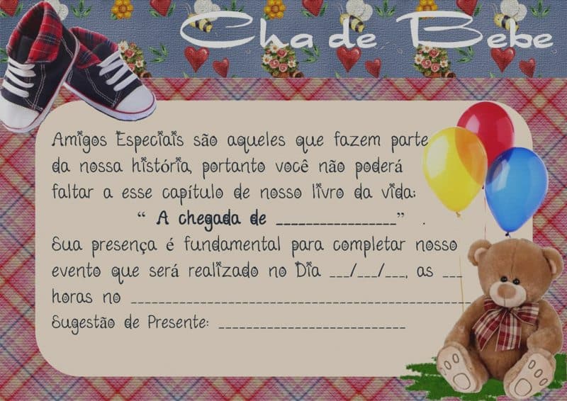 O convite de chá de bebê para montar pode ter vários modelos criativos e você pode escolher o seu modelo preferido de acordo com o seu bolso ou com o seu estilo.