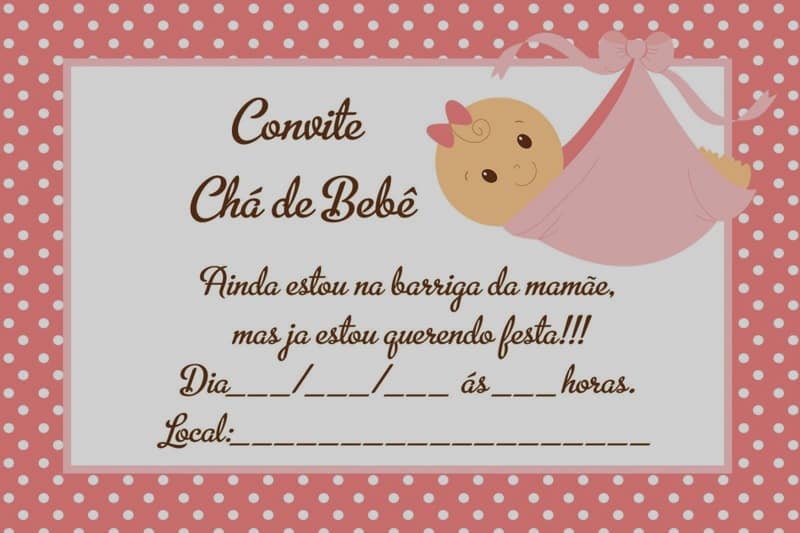 O convite do seu chá de bebê pode ser manuseado pelo computador. Escolha a imagem preferida, leve a um editor de imagens que você já tenha costume de usar e escreva a data e os outros dados do evento. Para imprimir você pode imprimir em um papel comum, mais fino, e colar em um papel mais grosso, ou já imprimir diretamente em um papel mais estruturado.