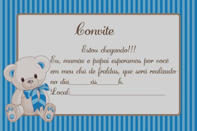 Mesmo quem quer facilidade e rapidez para confeccionar um convitinho para chá de fraldas encontrará o seu modelo preferido. Trouxemos hoje alguns modelos de convites editáveis para chá de bebê, com você montando o convite em um programa editor de imagens, em seu computador. Mas quem gosta de colocar a mão na massa também encontra modelo artesanal de convite de chá de fraldas.