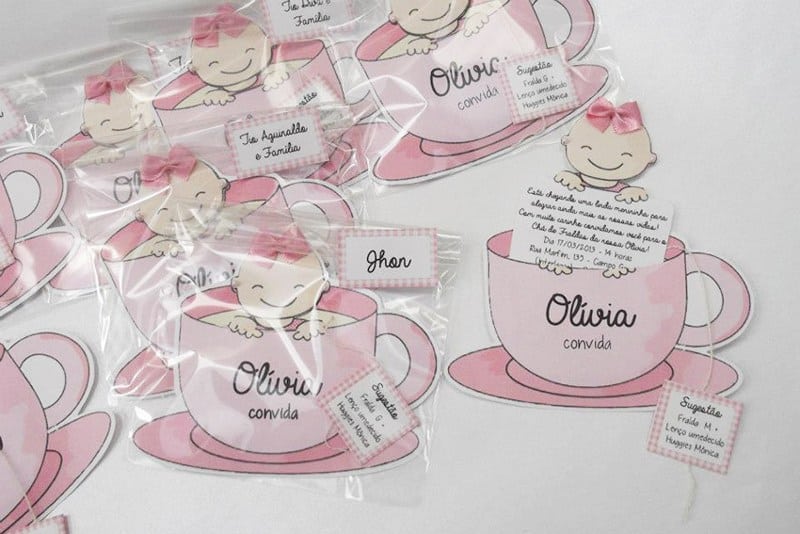 Seu chá de fraldas pode ter convite em formato de xícara, já que estamos falando de um chá.