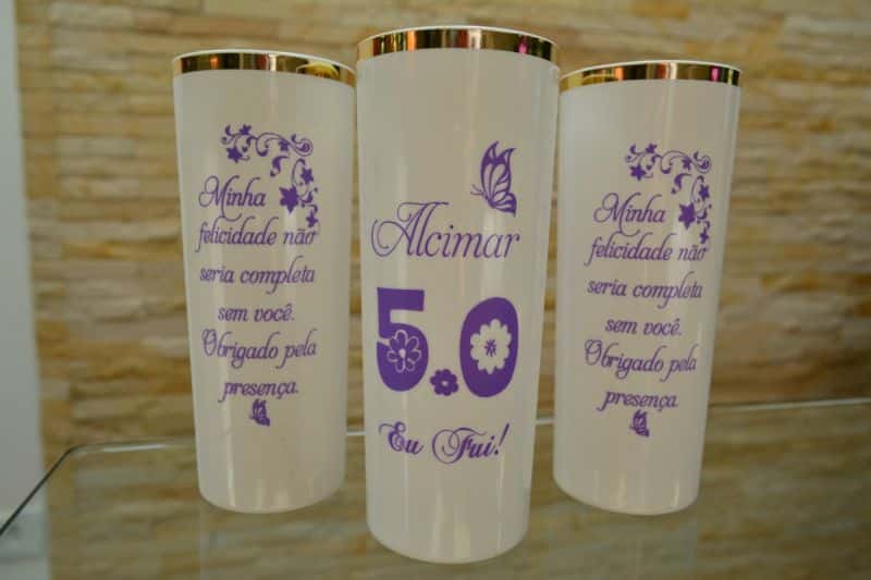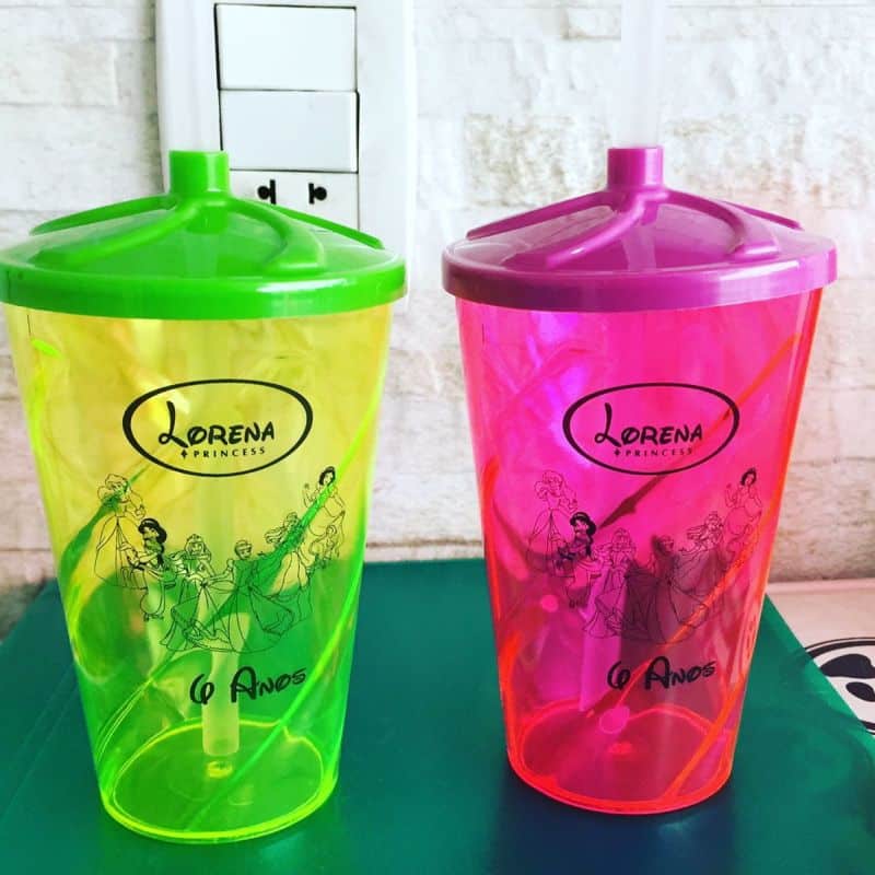 Seja para aniversário, para formatura ou para confraternização, você pode encomendar alguns copos personalizados para oferecer como lembrancinha ou para que sejam usados durante toda a festa e oferecer outro item como lembrancinha. O legal é optar por copos de acrílico com uma cor que também esteja na decoração da sua festa, porém, isso não é uma regra e você pode até optar por copos coloridos para a sua festa, se quiser.