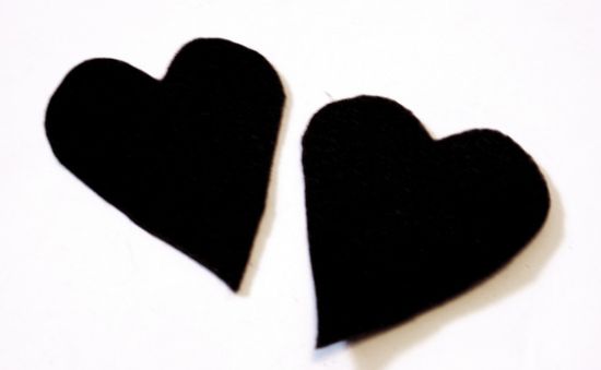 Para fazer esta peça você irá precisar de: tecido de sua preferência ou feltro; tesoura; pistola de cola quente; cordão de lantejoulas; e molde de coração (imagem a seguir).