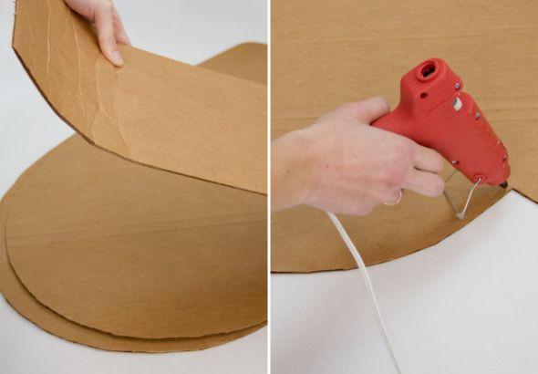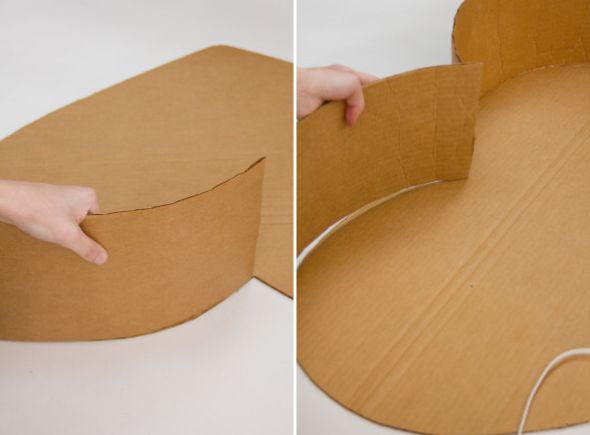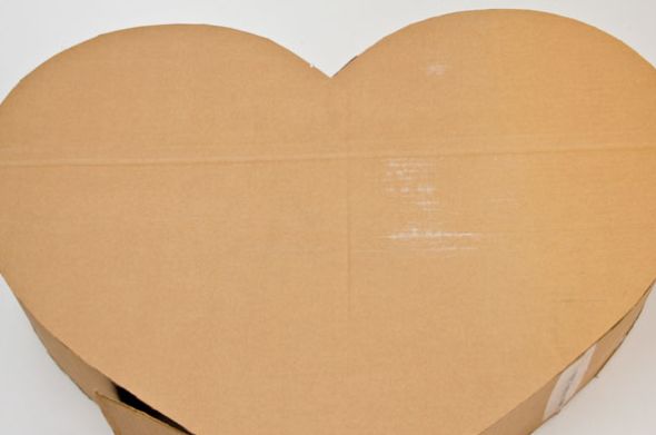 Comece desenhando dois corações no papelão. E aqui, dependo do tamanho que você quer para o seu coração e dependendo do tamanho da caixa de papelão escolhida, você terá que usar duas ou até três caixas e também fazer emenda em seu coração. Porém se precisar fazer emenda não precisa se preocupar, pois ao final não irá aparecer, já que o papel irá encobrir toda a parte de papelão. E corte também tiras largas no papelão para fazer as laterais de sua peça.