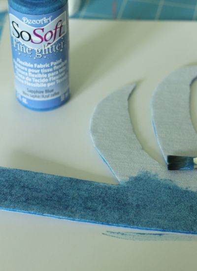Em seguida, com o auxílio do pincel, pinte toda a sua coroa com a tinta para tecido azul-safira.
