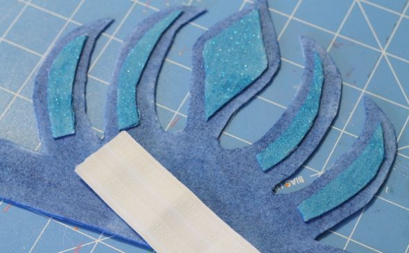 Em seguida, para finalizar a sua peça, corte um pedaço do elástico com o tamanho da cabeça de sua criança ou de sua cabeça, caso esteja fazendo uma coroa para incrementar a sua fantasia, e pregue cada ponta do elástico em uma extremidade de sua coroa, com o auxílio da pistola de cola quente ou de uma costura reta feita na máquina de costura. E está pronto!