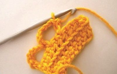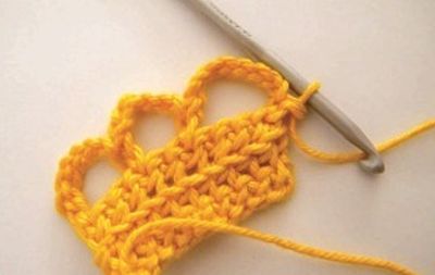 Em seguida, faça 6 correntinhas, pule um ponto e faça um ponto baixo no segundo ponto.
