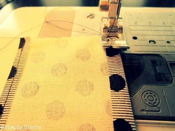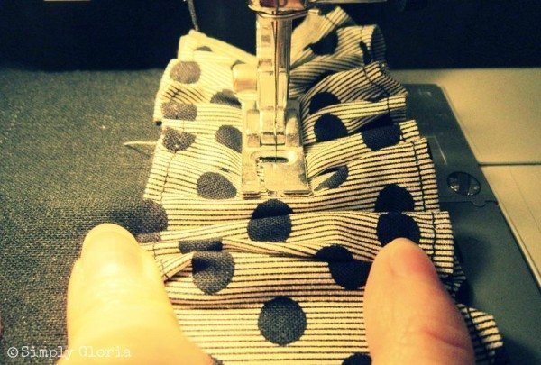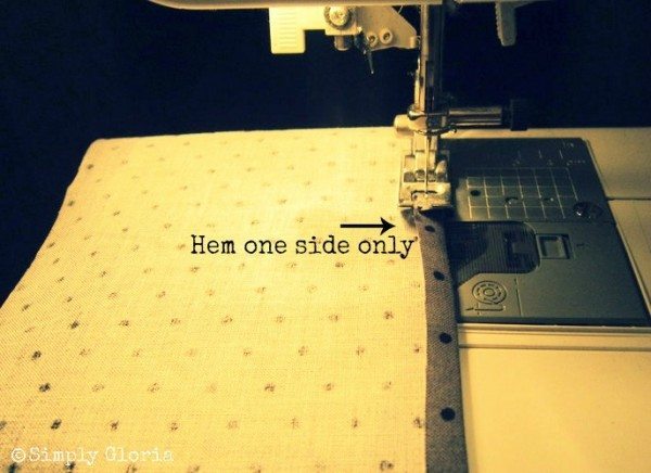 Logo após, faça a barra apenas em um dos lados nas tiras largas que serão os babados de sua cortina.