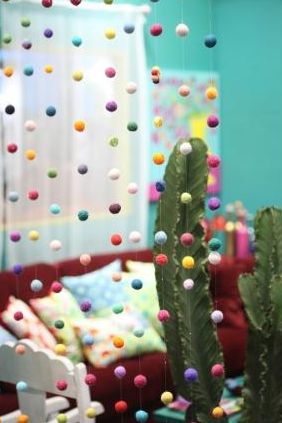Esta cortina de bolinhas de feltro pode ser posicionada em qualquer cômodo de sua casa (Foto: Divulgação)