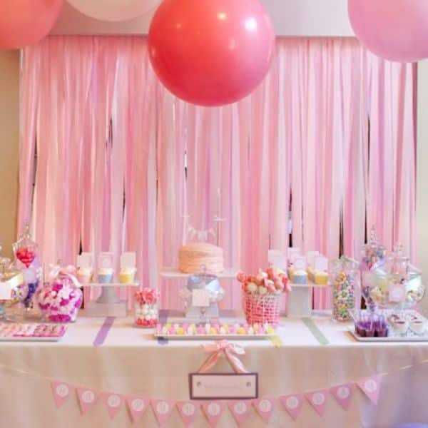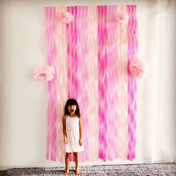 A sua cortina de papel pode ter a cor que desejar, como já foi mencionado, até a cor rosa, seja para crianças ou para adultos. E para todo tipo de festa.