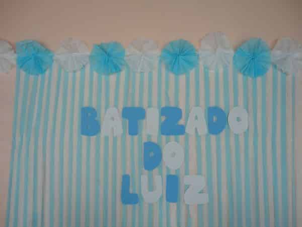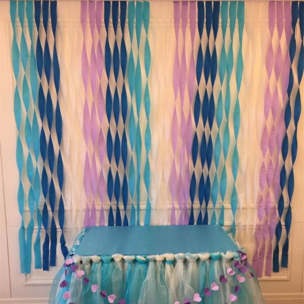 Além de fazer bolo de fralda e acrescentar outros detalhes infantis em seu chá de fralda você também pode incorporar uma cortina de papel crepom, seja o modelo comum ou o modelo enrolado.