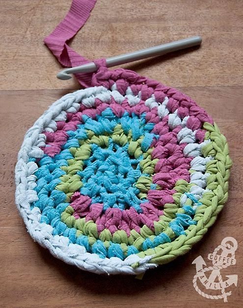 Créditos:http://www.coffeeandvanilla.com/recycled-t-shirt-crochet-rug/