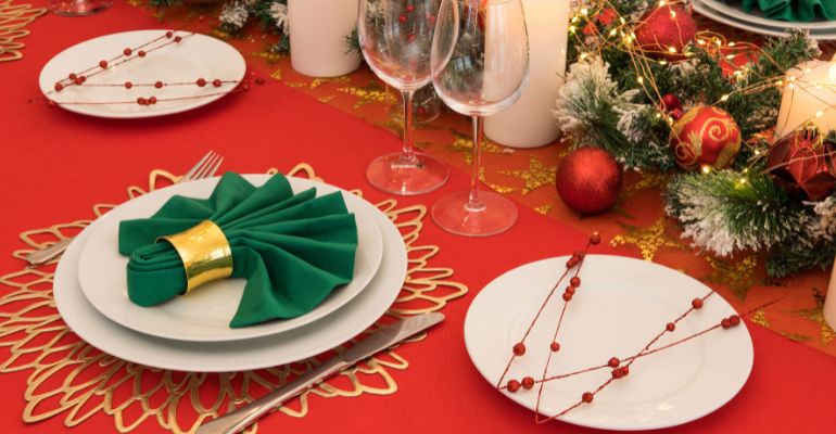 A mesa simples para um Natal especial pode ser decorada com poucos elementos, sem deixar de produzir a atmosfera natalina desejada.