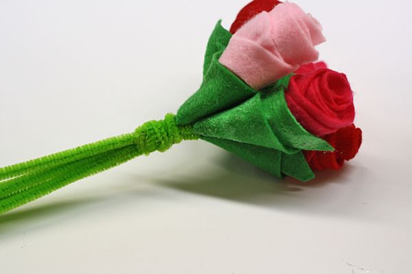 Logo após, junte todas as rosas e prenda-as com um pedaço de limpador de cachimbo.