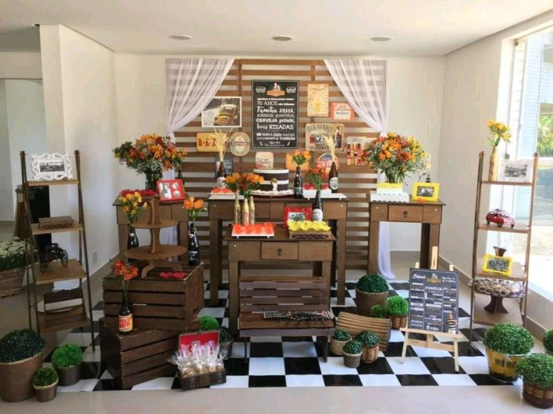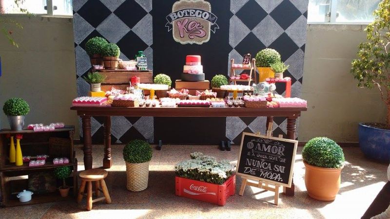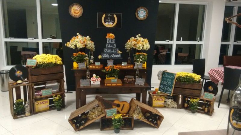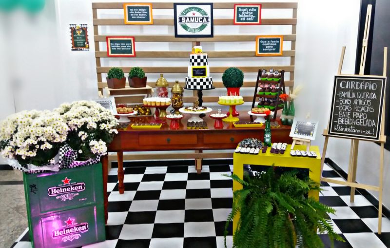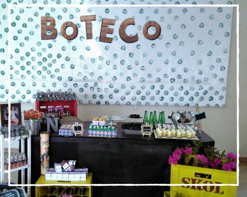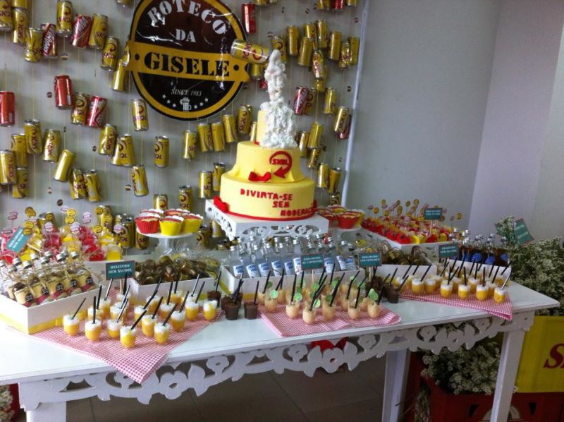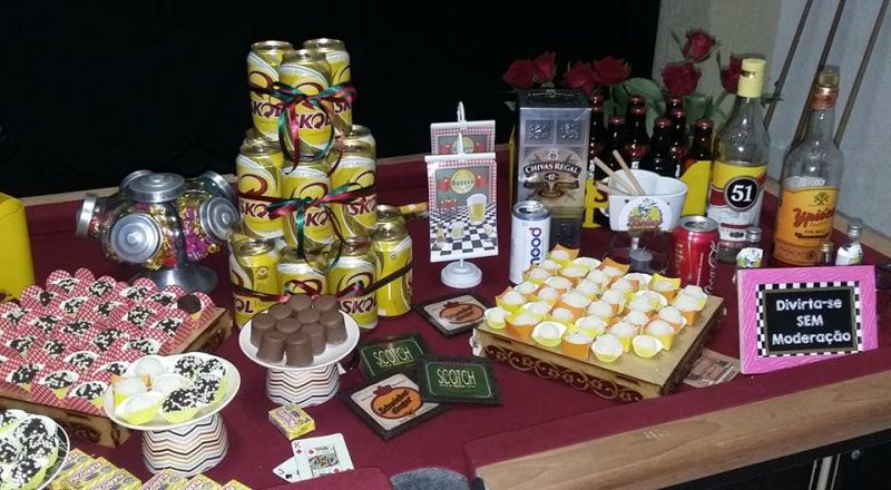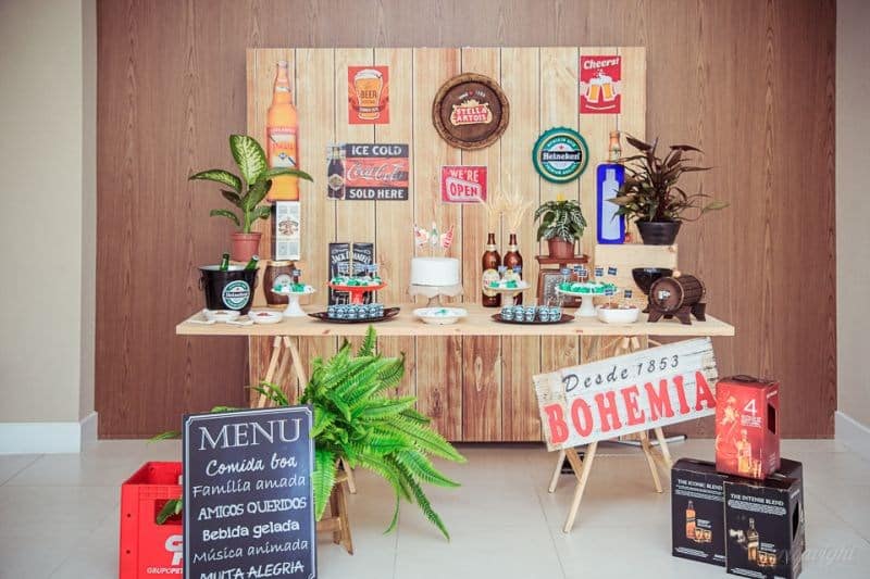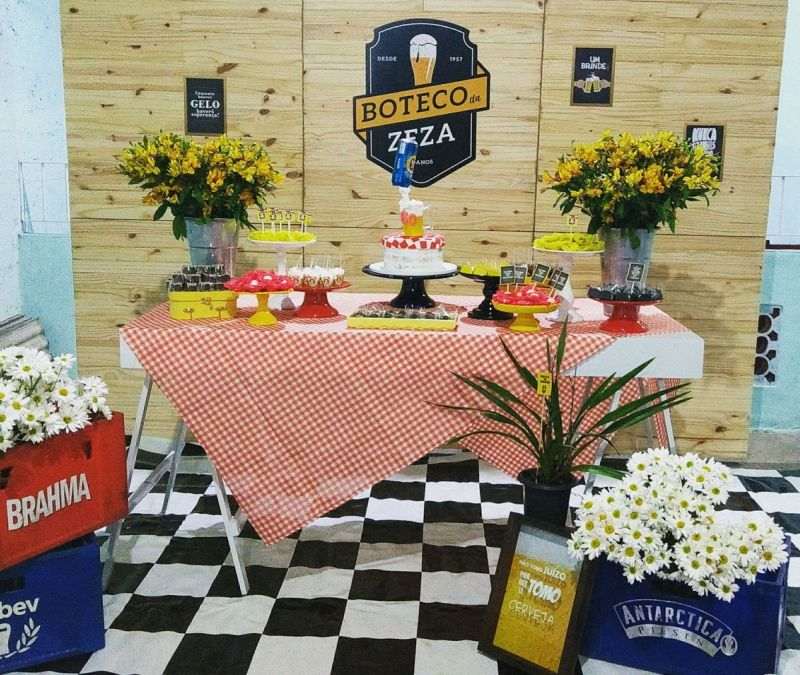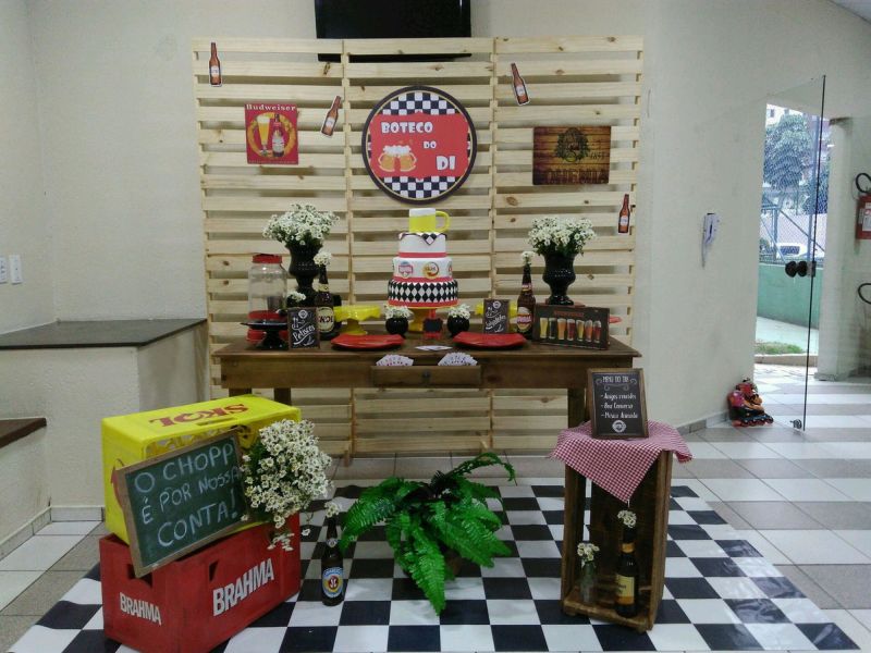 Se você adora diversão a festa com tema boteco é perfeita. Abuse das caixas de cerveja, das caixas de madeira, dos utensílios de bar, das flores, das toalhas xadrez, das cervejas (podendo até servirem como objeto de decoração), de bancos e de cadeiras de bar.