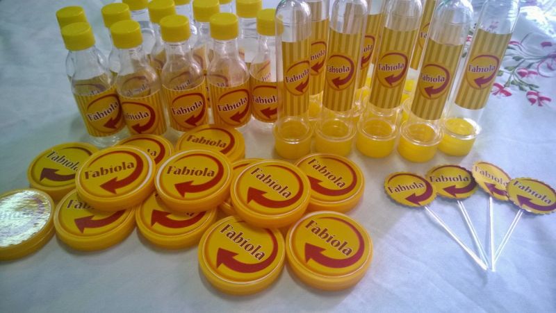 Os artigos de sua festa podem seguir um mesmo padrão, como uma mesma cor ou um mesmo formato, para personalizar, além do nome.