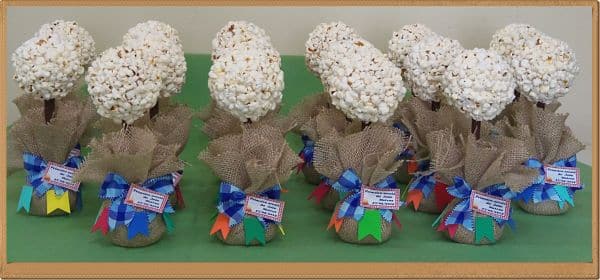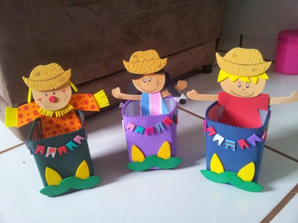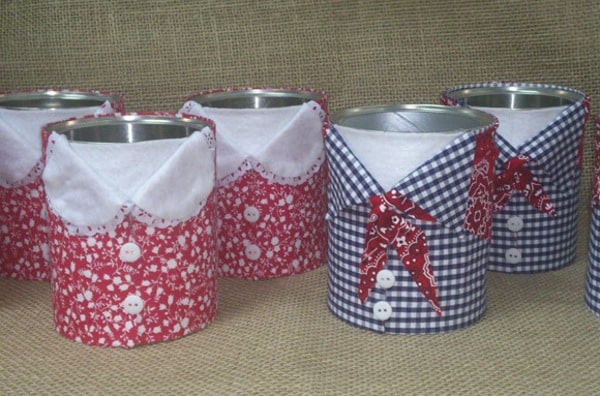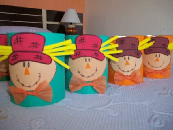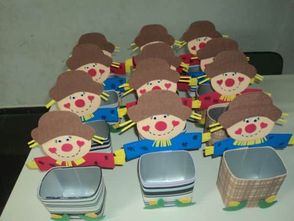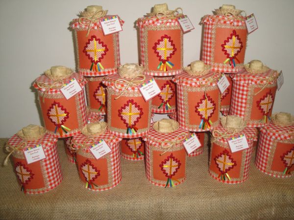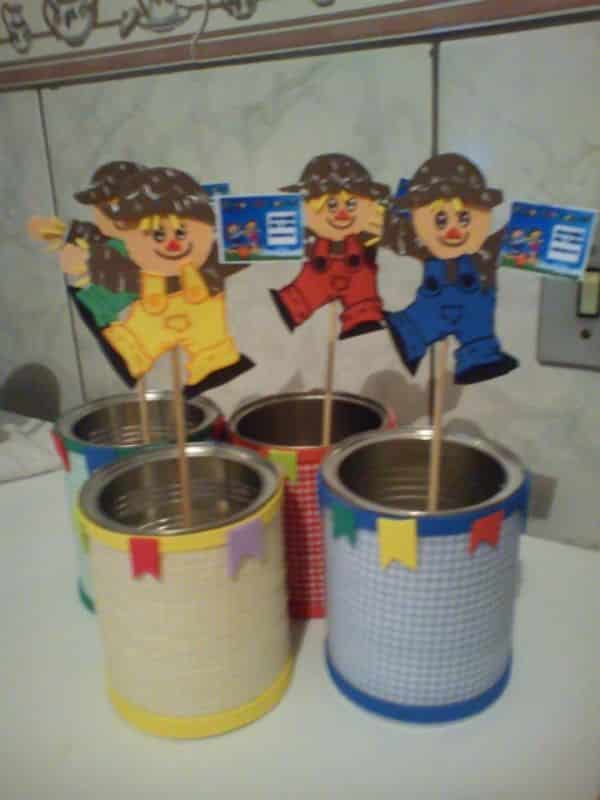 As latas quando enfeitadas (também com diversos materiais) podem virar os mais diversos enfeites juninos.