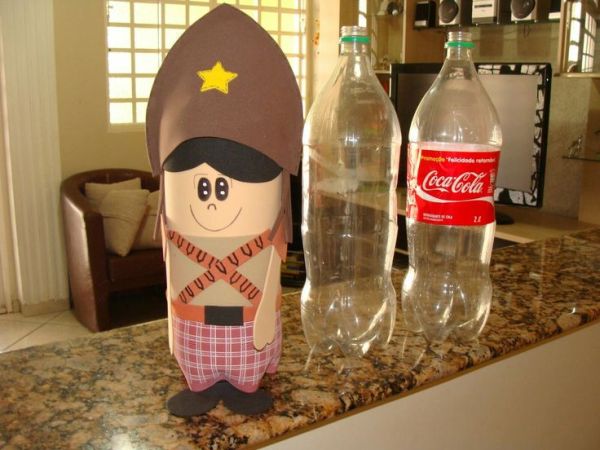 Você pode fazer milhos, caipiras e até barraquinhas, com garrafa pet, para a sua festinha junina.