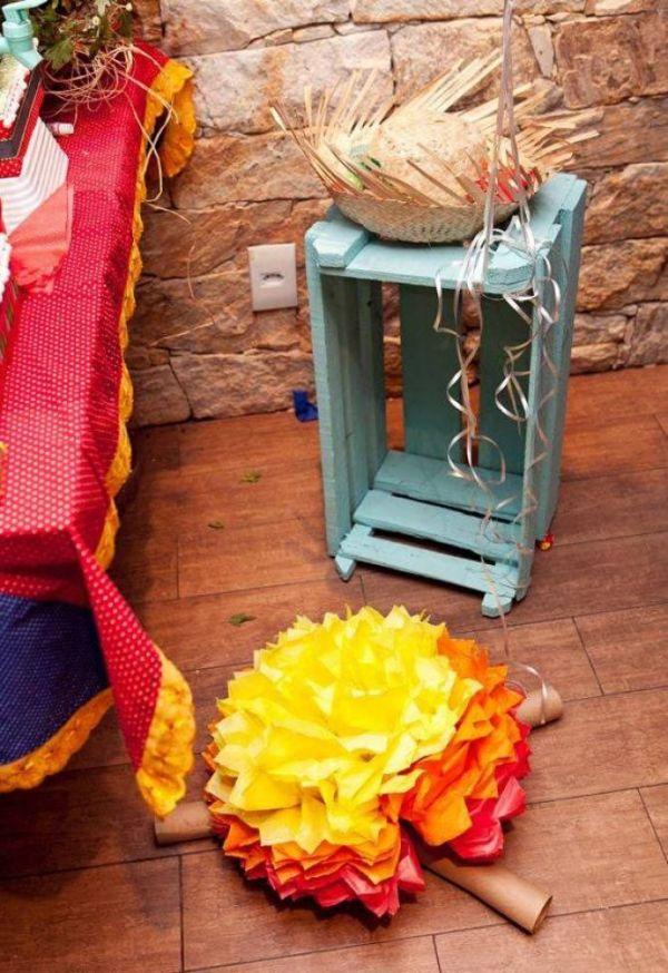 O papel crepom pode virar flores, fogueiras ou detalhes em sua festa junina.