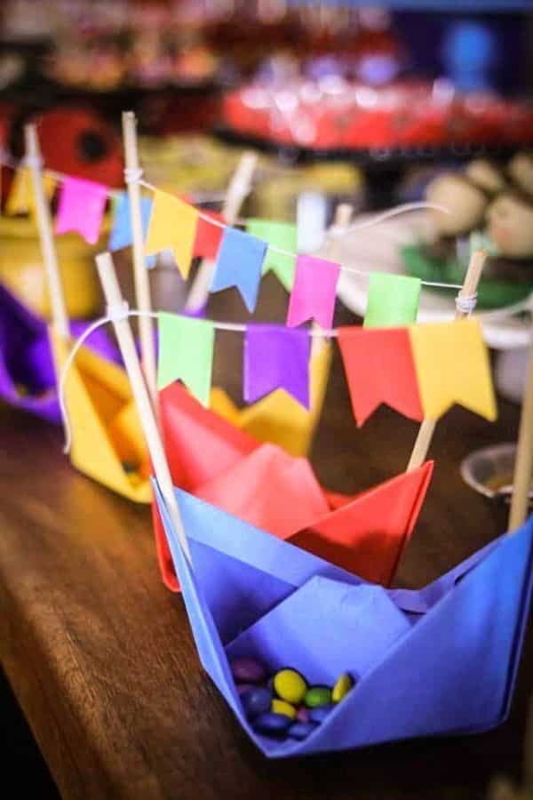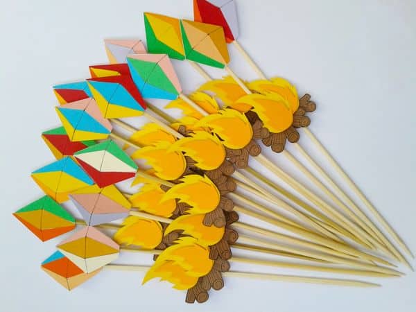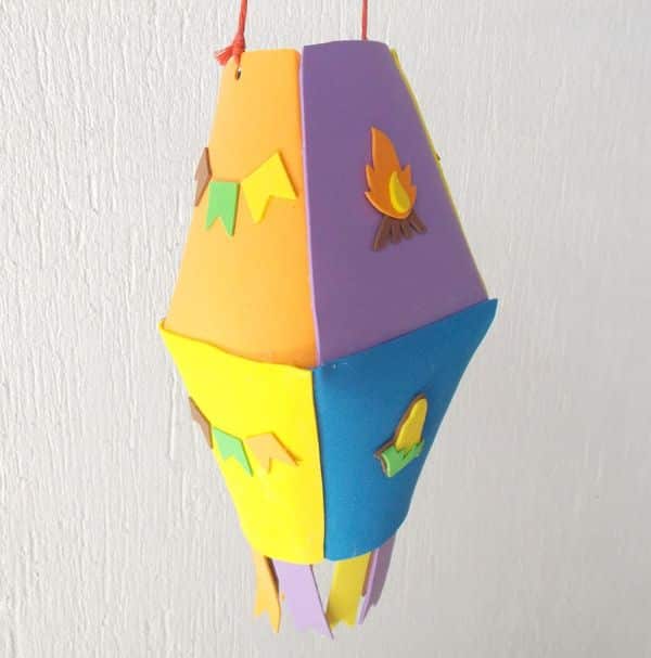 De acordo com os tamanhos dos seus retalhos você pode fazer determinados enfeites para a sua festa junina. Retalhos menores podem virar minifogueiras e retalhos maiores podem virar um balão junino, por exemplo.