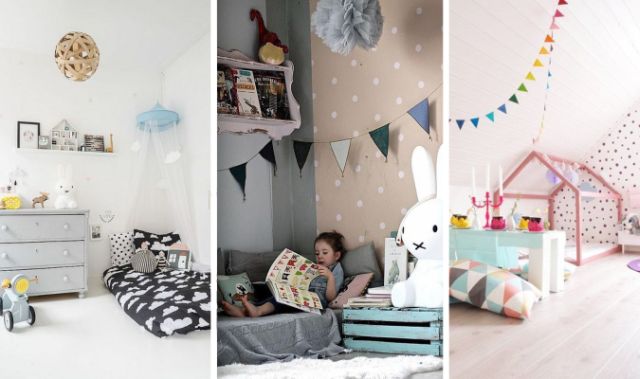 O quarto da garota pode ter quadrinhos artesanais, nichos decorados em casa, bichinhos feitos de papel na parede, guirlandas artesanais e adesivos para parede.