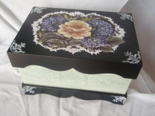 - Na tampa da caixa use tinta acrílica preta.
