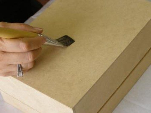 - Comece passando a base seladora na peça de MDF.