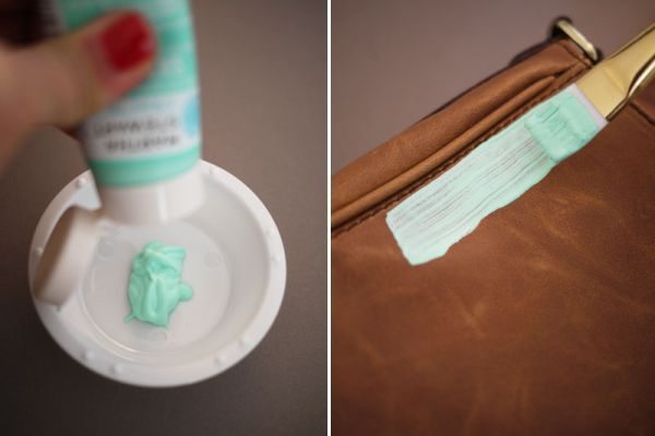 Em seguida, pinte toda a parte da sua bolsa onde você vai aplicar a decoupage, com a tinta acrílica com a cor que você quiser e o auxílio e um pincel comum.