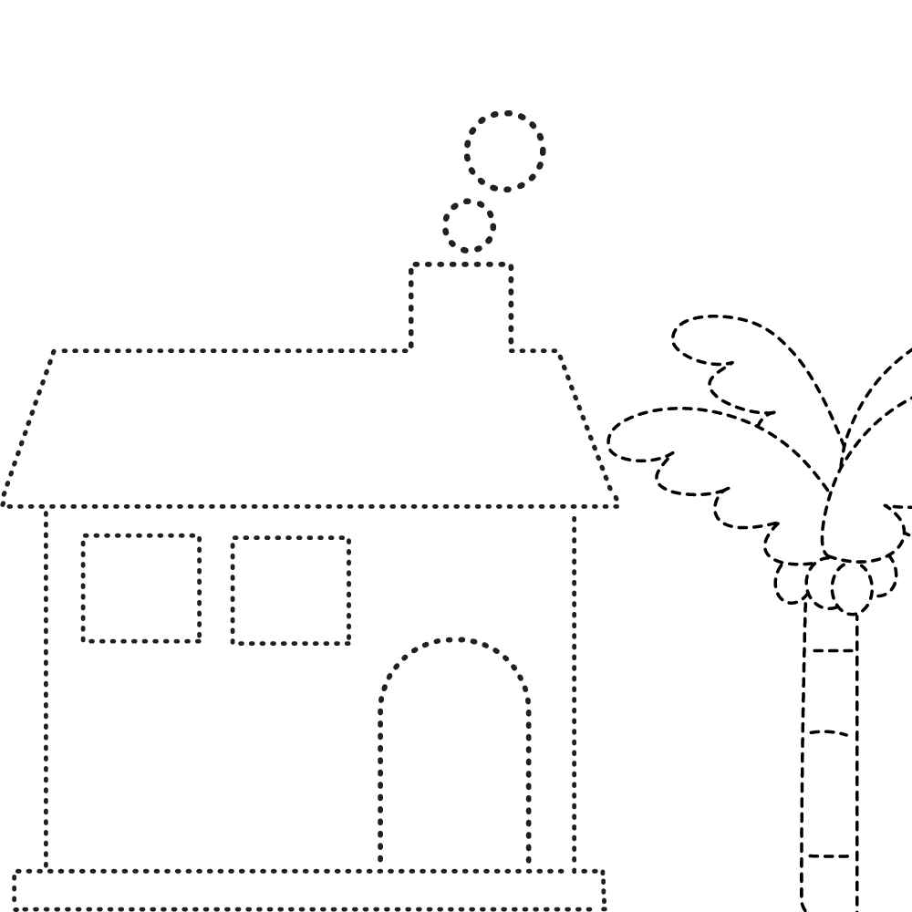 A casinha com coqueiro já é um exemplo de paisagem e um desenho que remete bastante ao verão.